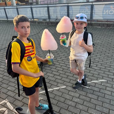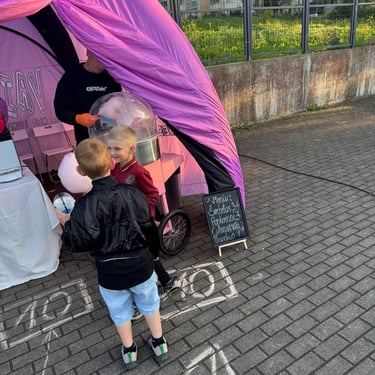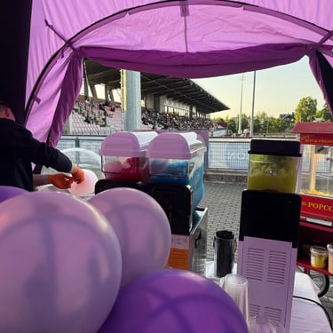 Atvykstame į privačias šventes, miestų ir miestelių renginius su spalvinga saldumynų palapine, kurioje gardus šerbetas, traškūs vafliai ir puri cukraus vata – kvapni, saldi ir neatsiejama tikros šventės dalis! 🍦🧇🍬